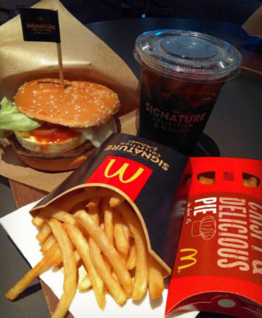從照片中可以看到,木質調餐盤上,放著夾著厚厚內餡的漢堡,漢堡上層還插著一支小旗子用來做裝飾,一旁還有酥炸薯條的搭配,讓人看了食指大動,原來這是麥當勞在德國的餐點,這張照片PO出上網路後,也讓不少網友感到非常驚訝「和台灣版的差很大」、「桌面上木紋很特別」、「期待台灣麥當也能提升品味的在地化」、「好漂亮唷!」,不過也有網友認為台灣埋當勞相對比較便宜,品味示要用錢買的!