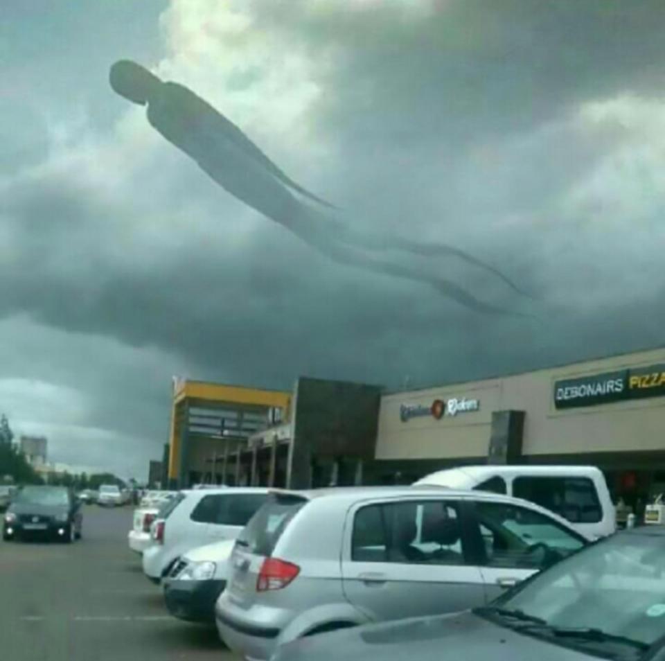 「催狂魔」沒有靈魂,卻可以吸取別人的靈魂,在《哈利波特》中被認為是世上最邪惡的怪獸。根據《每日郵報》報導,位於非洲的國家尚比亞(Zambia)當地的一個購物中心,日前上方天空突然出現一個長度超過100公尺的「長條人影」,它的頭部、四肢、身型的線條分明,和雲朵的組成結構看起來明顯不同。