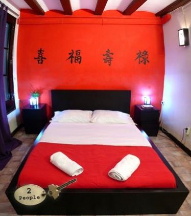 其實在前些日子,就有位部落客到西班牙旅遊時,發現巴塞隆納有一間民宿,他主打每個房間都有不同的異國風情,殊不知他翻到中國風的客房時,驚悚的畫面震懾他的雙眼,因為床後的牆被刷滿亮紅色的漆,還寫上了大大的「喜、福、壽、祿」4個字,甚至床頭兩旁分別各放了1盞明燈,黑色的床架還配了紅、白色的被單,完美呈現出「殯葬風格」,被網友戲稱「只差三炷香了」。
