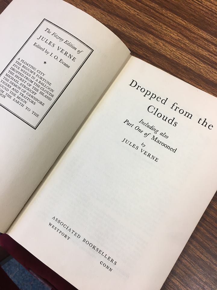 綜合外媒報導,此書為科幻小說之父凡爾納(Jules Verne)的著名小說《墜落雲端》(Dropped from the Clouds),為「神秘島」系列(Mysterious Islands)中的一本。沒想到館員查看借閱資料時,發現借閱日竟已50年前的1967年1月5日,才驚覺這本書竟然在圖書館消失了半個世紀之久才又重回館中,而館長麥斯琳(Deb Messling)表示,不知道是誰還回這本書,因為館員是在讀者自助回收區點收書籍時,才發現這本書頁已經斑駁、內文磨損且有污漬,書況非常不佳的書。