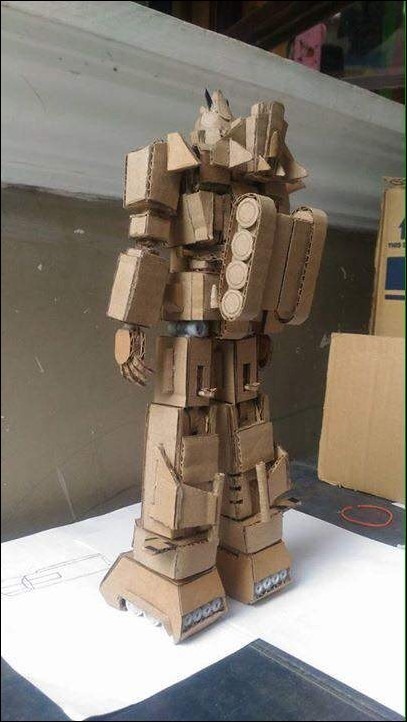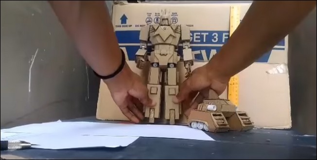 紙板是一種很方便的材料,除了取得容易,他還具有一定的剛性跟容易加工的特性,適合DIY 做點小東西,不過有個神人把紙板的特性發揮得淋漓盡致,他利用紙板做了一支很有古早味的合體機器人波羅五號(日文原名:超電磁マシーン ボルテスV,英文譯為 Chōdenji Machine Voltes V),做出機器人對很多手工不錯的朋友來說大概不是太難的題目,只要把機器人的細節作出來就有九成像,但這位神人除了把波羅五號的外觀做出來,甚至也讓整個機器人具備合體分離機制,結構複雜程度令人讚嘆。
