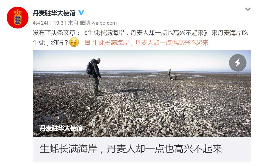 位於丹麥的海岸遭到外來的「生蠔」大舉入侵,近日丹麥駐陸大使館就在官方微博貼出「生蠔長滿海岸,丹麥人卻一點也高興不起來」的文章,沒想到引起大陸網友們廣大的回響,而《丹麥》在貼文中邀請大陸人到丹麥「幫忙吃生蠔」!