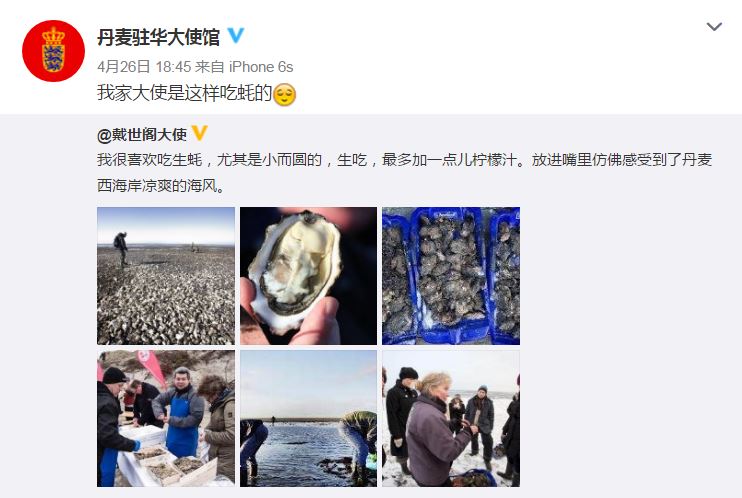 ▼微博分享大使如何吃生蠔(圖/丹麥駐華大使館微博)