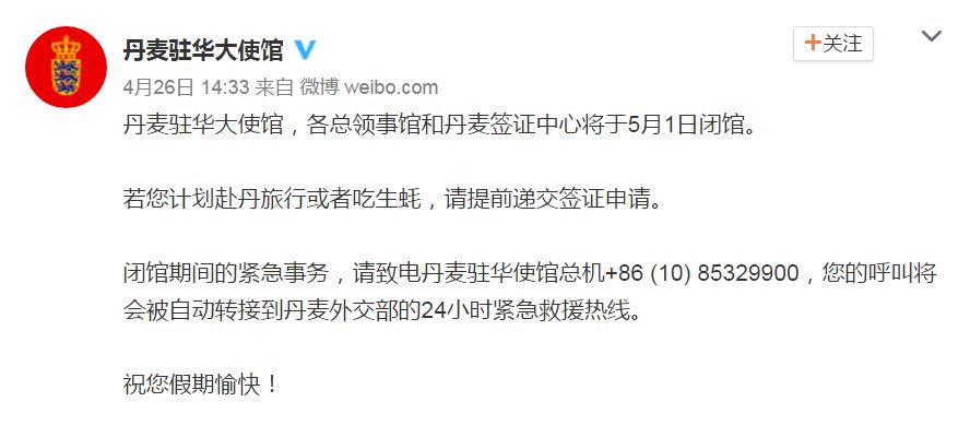 沒想到丹麥駐陸大使館超認真!看完網友留言之後,還另外發了一篇「丹麥生蠔捕捉指南」的文章,要告訴大家生蠔氾濫的明確海域,同時還做了交通方式的懶人包。最後提醒大陸網友,目前沒有真的開放「生蠔簽證」,不過因為當地五一假期就要到了,因此也提醒大家,「若您計劃赴丹旅行或者吃生蠔,請提前遞交簽證申請」。