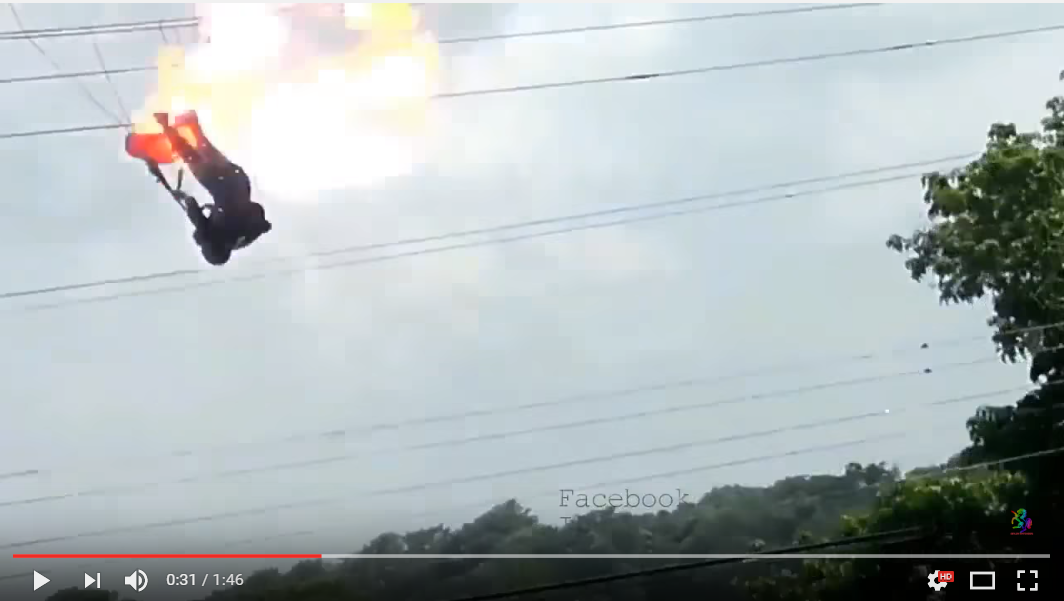 根據外媒報導,這件意外發生在斯里蘭卡庫德奧耶(Kuda Oya)軍營附近,當時女兵正進行跳傘訓練,但在降落的過程中卻意外飛向高壓電纜,她在無路可退的狀況下撞上電纜,當場造成電光爆炸,女兵瞬間變成一大團火球墜落地上。