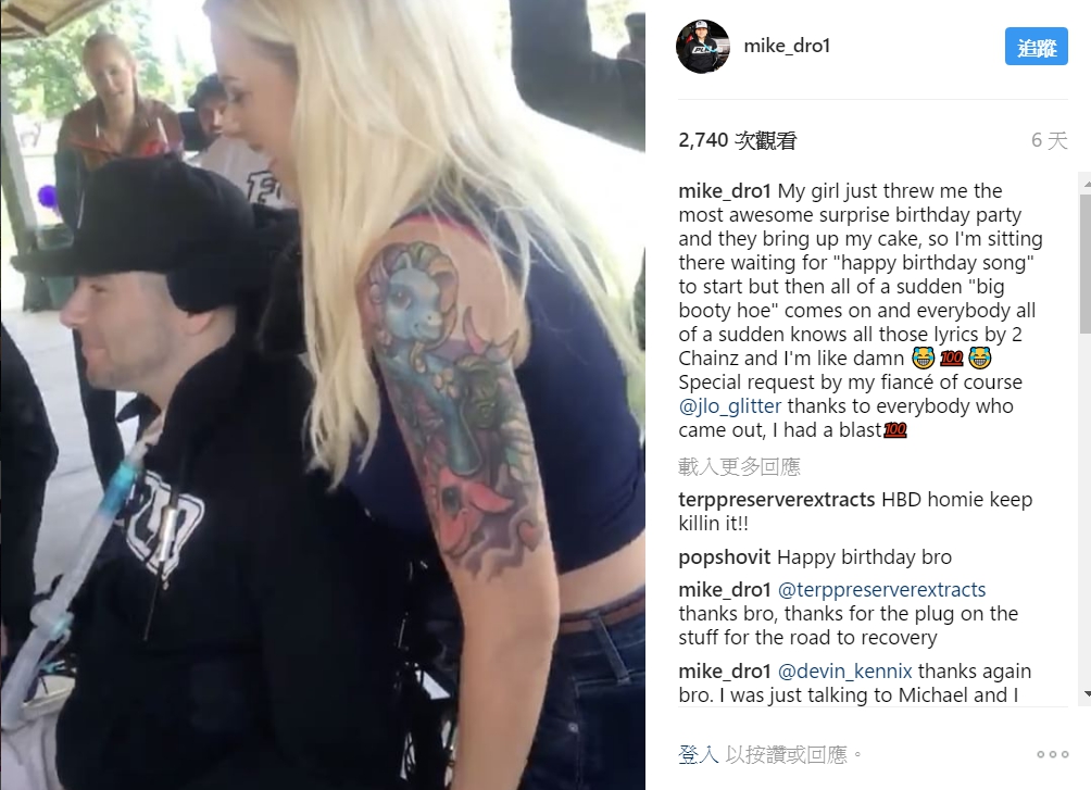 ▼卓特在向羅娃絲求婚後的隔天就發生了意外導致癱瘓,醫生告知他生活無法自理。(圖/mike_dro1 IG)