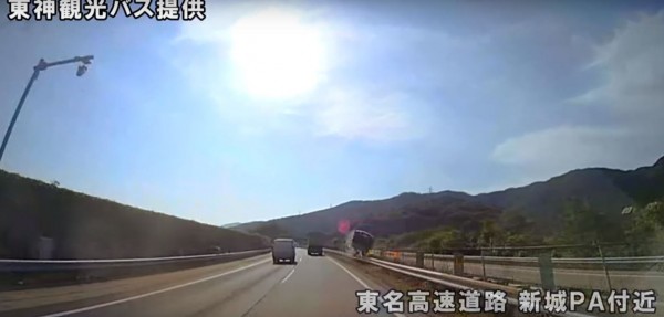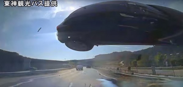根據《朝日新聞》報導,黑色轎車因為失控衝進分隔島,隨後彈起來飛向對向車道,恰好撞上一輛載著47位遊客的觀光巴士。56歲巴士司機齋藤正信,被認為是將傷亡減到最小的重要關鍵,因為他在轎車飛來的那一瞬間,在極短的時間內將方向盤向左轉,讓轎車砸到遊覽車的鋼骨,而不是直接從擋風玻璃撞進來。但車頭擋風玻璃與前車頂還是被削掉,畫面看起來相當驚悚。