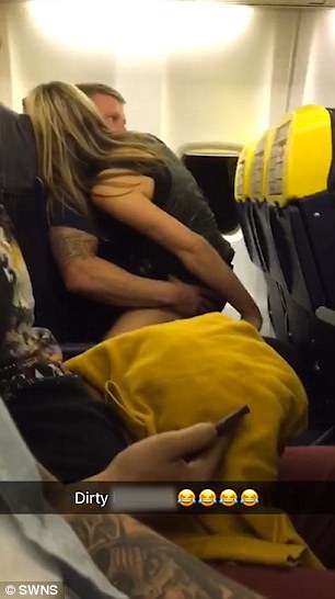 本(6)月7日,一對男女在愛爾蘭瑞安航空(Ryanair)從英國飛往西班牙伊比薩島(Ibiza)的一架飛機上,上演現場