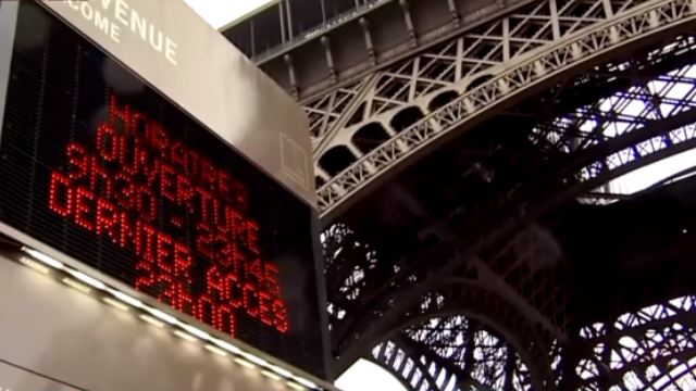 巴黎恐攻過後,巴黎知名景點羅浮宮,門前的法國國旗,降半旗致哀。原本是早上八點開門,現在延到下午,周邊更出現軍警交叉巡邏,只見軍人3、4人一組,前腳才走,馬上又看到警察3人一組,各個都是荷槍實彈,氣氛肅殺。儘管如此,東森新聞團隊卻拍到一個大陸直銷公司,多達3千多人的旅遊團,興致一樣很高。大陸遊客:「我不會擔心,看到巴黎街上警察很多,他們是來保護我們的,還是要購物,還要去看這邊的景色,還要去一些景點,還是挺充實挺快樂的。」但在另一個巴黎知名景點艾菲爾鐵塔,來度蜜月的這對澳洲新婚夫妻,卻覺得相當掃興。