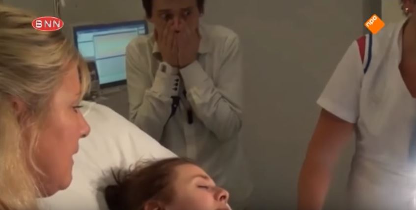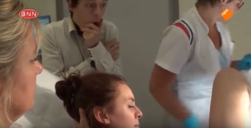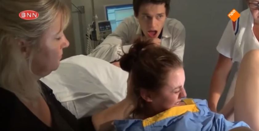 根據國外媒體報導,荷蘭實境秀「Vier Handen Op Eén Buik」最近播出了準爸爸達洛(Dalo)的陪產過程,影片中他的17歲女友躺在床上辛苦地產子,但達洛卻頻頻露出害怕的神情,即便寶寶出生的當下也看不出喜悅,反而是窩在產房的一個角落,驚嚇的表情相當逗趣。
