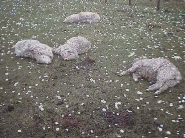 西班牙北部上周下起猛烈的「冰雹」,不僅將當地居民的車砸得「千瘡百孔」,連農場內的羊咩咩都被砸死,而這場冰雹下了至少45分鐘,造成不小的損失。