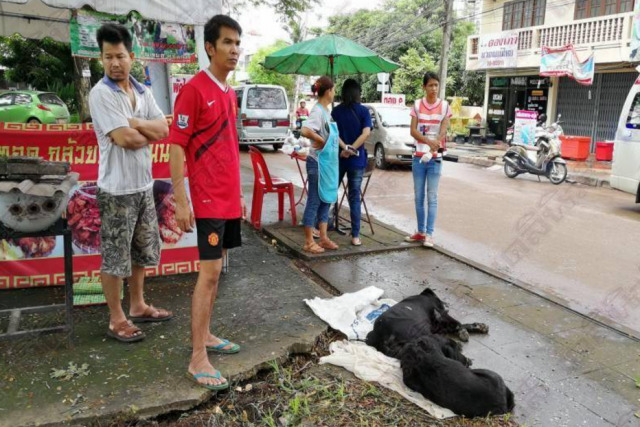 據泰國《世界日報》報導,民眾蓬威瓦(42歲)在當地時間周三凌晨3點左右,正準備要開店時,看見有三隻狗狗在路邊玩耍,這時有兩名女子騎機車經過,女子疑似疏忽,意外撞倒有孕在身的母狗後,便