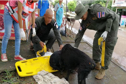 ▼ 救護人員到場後,公狗才願意與同伴分開。(圖/翻攝自泰國《世界日報》)