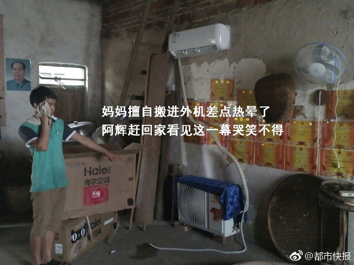 冷氣恐怕會熱到受不了,大陸一位男大生擔心家鄉的父母夏天太熱,就訂了一台分離式冷氣要孝敬父母。結果冷氣裝好後,男大生