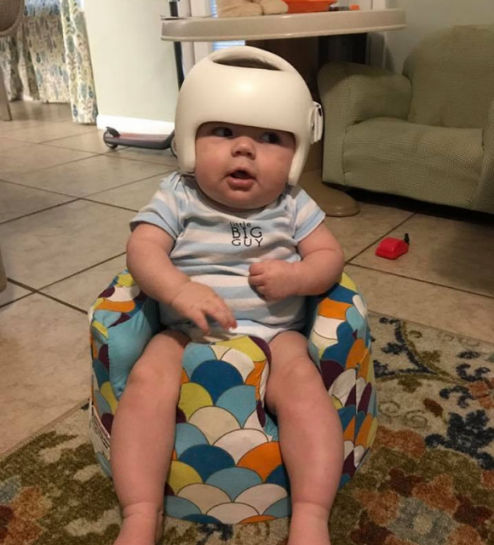 ▼小寶寶戴上安全帽矯正頭型。(圖/翻攝自 SheaSerrano 推特)