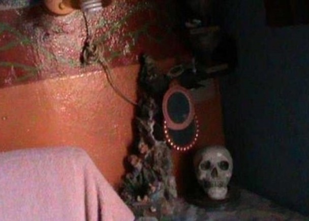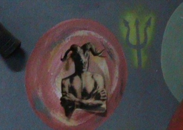 刺青圖樣,也在嫌犯住處搜查到一大堆與撒旦、惡魔有關的詭異用具,其中包含「撒旦音樂」、大斧、三叉戟以及不知名的非洲宗教物品,更在院子裡發現一隻疑似作為祭祀用途的活羊。