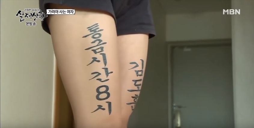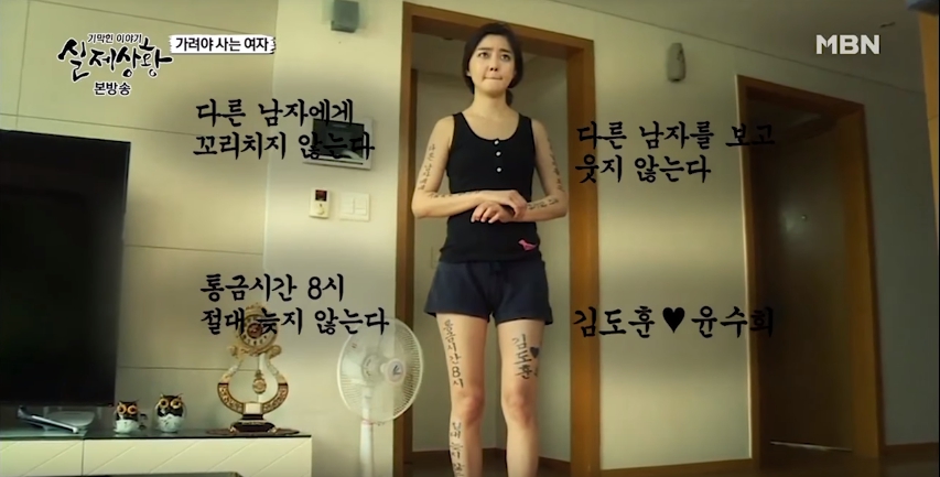 該節目播出的「必須遮掩過活的女子」篇,敘述一名男子深愛著女友,但他卻十分沒安全感,所以限制女友和其他異性互動相處。然而,某次因快遞送錯包裹,女友為了弄清楚而和自家社區男警說話,卻被男友撞見,事後男友竟將女友的衣服剪開,並在女友的背部、手部、腿部等處刺下「絕對不可以對別的男人笑」、「門禁時間8點絕對不晚回家」、「(女子名)發誓此生只愛(男子名)」、「我絕對不勾引其他男人」等誇張標語,甚至恐嚇女方如果不乖乖屈服,就要將女生的裸照散佈到網路上。所幸最後女方的母親發現此事而報警,該名恐怖情人被判處4年有期徒刑,女子也因此躲過一劫。