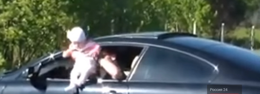 危險舉動。近日一段名為《沒有座位》(No Seat)的影片在網路上瘋傳,影片中顯示,阿芬拿斯夫單手握著黑色小轎車的方向盤,另一隻手則抱著女嬰伸出車窗外,以高達70公里的時速在郊區的馬路上行駛。
