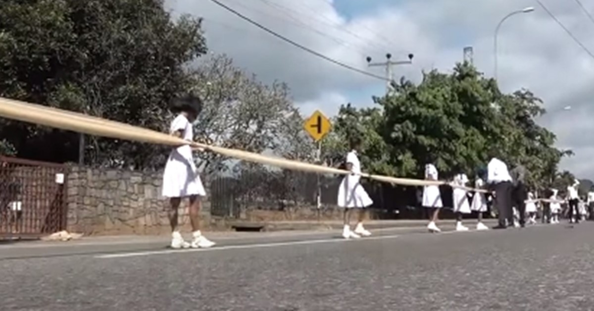 紗麗長達3.2公里,動用了250名學童幫忙抬,遭當地國家兒童保護機構警告,「已