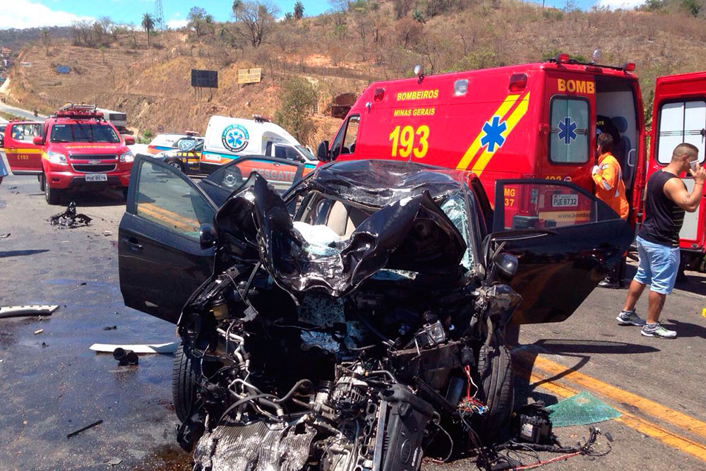 根據《g1.globo》報導,巴西米納斯吉拉斯州(Minas Gerais)薩巴拉的高速公路在17日發生一起重大車禍,釀成1人死亡4人受傷,傷者被送往市區醫院治療,而機車騎士當場死亡。事故現場的照片中,機車零件散落一地,小客車與機車接被撞得扭曲變形,小客車車頭更是近乎全毀,破了一個大洞,可想而知意外發生當下,撞擊力道有多大。
