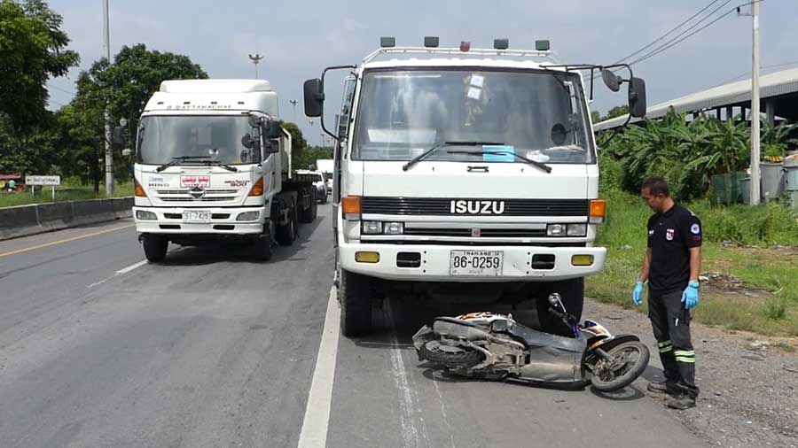 根據泰國媒體《workpoint news》報導,上個月29日下午2點左右,泰國巴吞他尼府(Pathum Thani)的三闊地區,一名57歲的農民騎車出去買除草劑肥料,準備帶回來給稻田施肥,沒想到回來途中快到要家時,竟然發生被拖車撞死的意外。