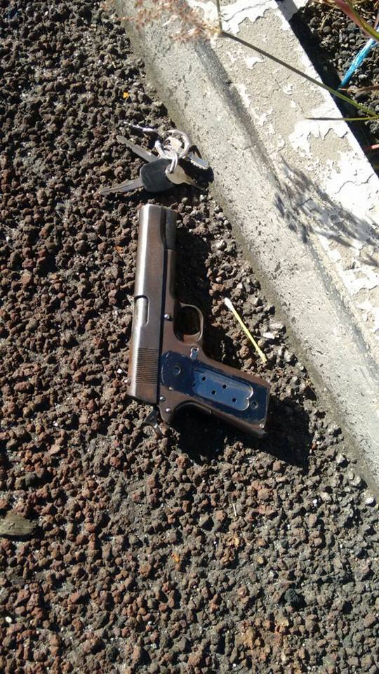 眼見就要被警方追上了,於是搶匪在情急之下想棄車逃逸,接著在跳車後試圖開槍射擊警方,然而搶匪似乎忘記拉上手剎車,因此卡車持續運轉,直接從他的身上輾了過去。