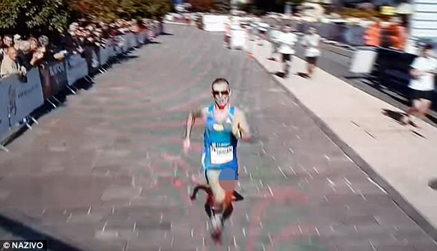 馬拉松好手烏班(Jozef Urban)在比賽時,下體意外跑出來。(圖/翻攝自