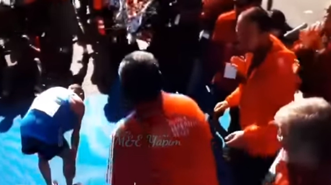 影片中烏班「小底迪」的出頭畫面清晰可見,一旁的工作人員與觀眾有察覺到,但因為他本人將心力都投入在比賽中,並未感受到「下面」涼涼的,還與旁人擊掌鼓勵,完成賽程。