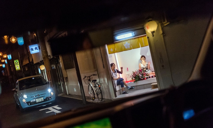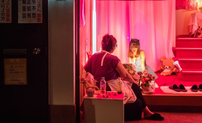 日本雖然盛產成人片,但自1958年起便禁止賣淫,可是某些地方仍存在著鮮為人知的「紅燈區」。位在大阪市的「飛田新地」是日本西部最大的紅燈區,一位美艷打扮的女子坐在屬於自己的一方空間中,每個房間都還配有一位專屬的「媽媽桑」,負責招呼客人。由於當地由黑道把持,嚴禁嫖客、遊客攝影、拍照,少有人知道此處樣貌,但一名膽大的俄國記者,在店家門口偷拍下了照片,揭開「飛田新地」的神秘面紗。