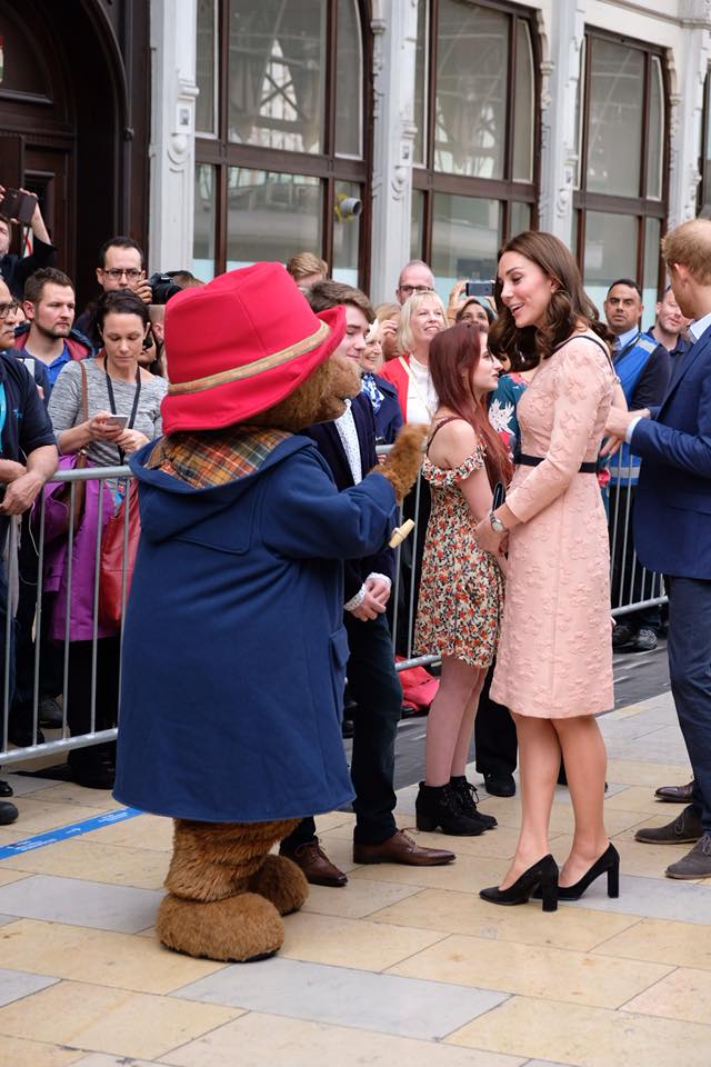 哈利王子一同出席由皇室慈善機構所舉辦的活動,凱特一襲蜜桃粉紅色七分袖洋裝展現優雅氣息,成為鎂光燈焦點,已經育有可愛的喬治王子以及夏綠蒂公主,日前在傳出懷出第三胎,現已經懷有三個多月的身孕,而她昨也特定跟車站著名吉祥物帕丁頓熊慢舞,十分討喜。