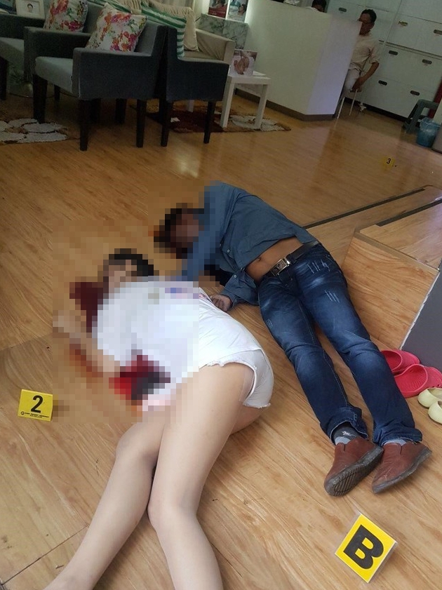 綜合國外媒體報導,16日柬埔寨金邊一間美容院,現年23歲的女歌手珊賽雷(San Srey Lay)被53歲的丈夫陳林(Chey Lin)開槍擊斃,陳林確認珊賽雷已經死亡,接著舉槍自盡,倒在珊賽雷的身旁。附近的保全聽到3、4次槍聲,立刻衝到美容院查看,但映入眼簾的,是已經倒臥在血泊之中的夫妻,整個驚悚過程全都被美容院的監視錄影器給拍了下來,相當駭人。