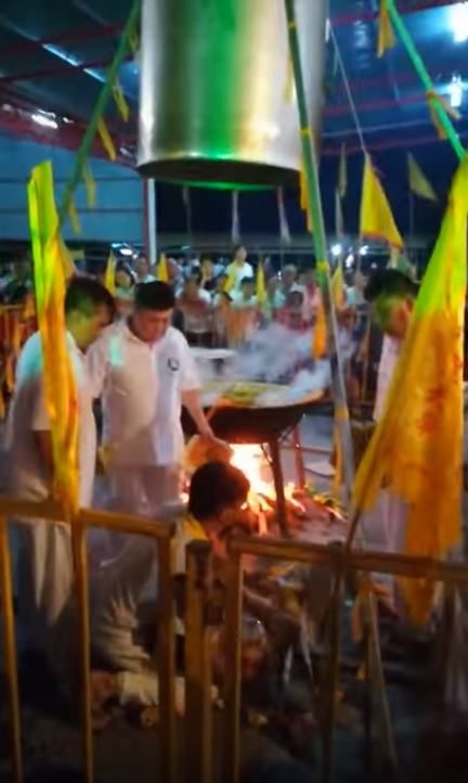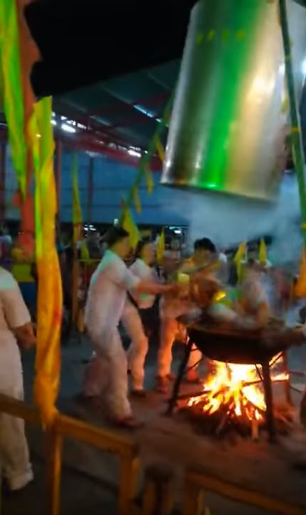 根據《星洲網》、《東方日報》報導,69歲的林文華師傅23日晚上為了配合「九皇大帝慶典」,受邀在家鄉吉打雙弄的清龍宮前廟表演「蒸活人」顯神功。一開始表演時,只見林文華神色自若地盤腿坐在大鍋中,一旁工作人員幫忙蓋上大鍋蓋後,就不斷添柴讓爐火燒得更旺。