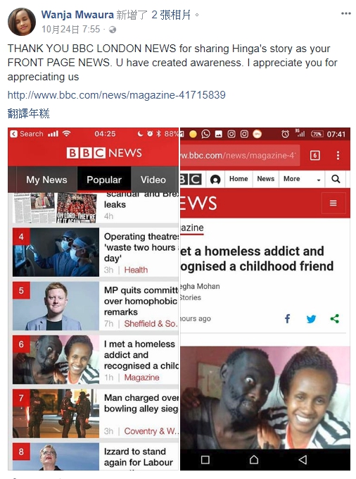 ▼辛賈在戒毒所中撐過最辛苦的前九天(圖/Wanja Mwaura臉書)