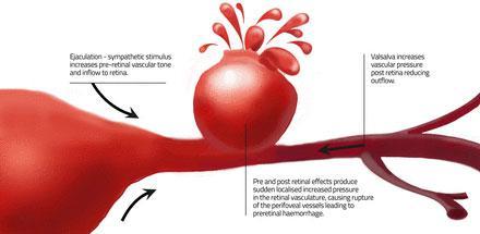 同時期刊也做出詳細的解釋,報告中指出,由於男性在達到性高潮前,會不由自主地憋氣,以企圖延緩高潮的到來,而這個憋氣會讓視網膜靜脈壓力(retinal venous pressure)突然暴增,嚴重時恐造成血管破裂,導致視網膜出血症(hemorrhagic retinopathy),視力因此大受影響。
