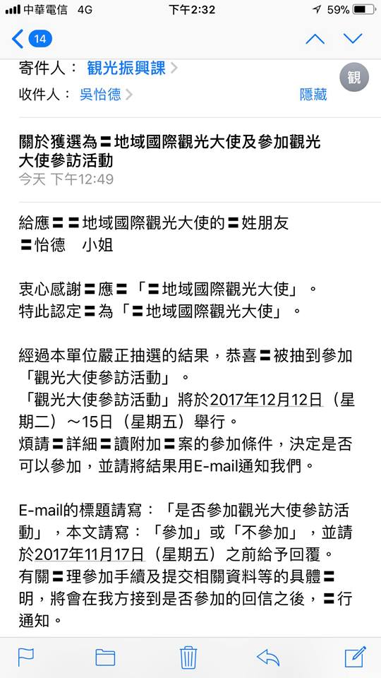 免費觀光行程,近日公布了獲得免費行程的名單,由台大的「