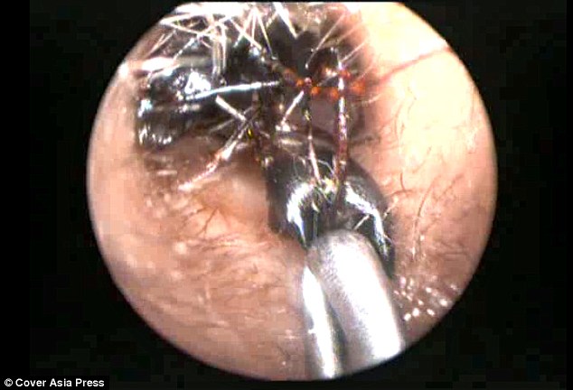 沒想到經過縝密的磁振造影檢查和電腦斷層掃描後,醫生仍一無所獲,施蕾雅耳朵內沒有任何異狀。醫師只能不斷幫施蕾雅從耳內夾出大黑蟻,平均一天可夾出8到10隻,高峰期時甚至能夾出數百隻。