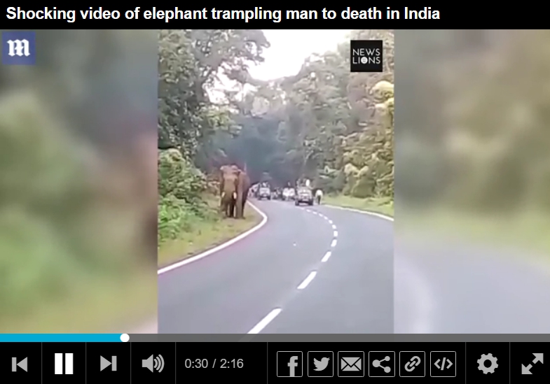 每日郵報》報導,當時這名保全開車要上班,行經傑爾拜古里縣(Jalpaiguri)的31號公路上時,一隻野生大象突然出現在前方,幾乎所有車輛都因此停下來,等大象離開,但該名保全卻反而下車,上前走近大象,並拿出手機想要自拍。