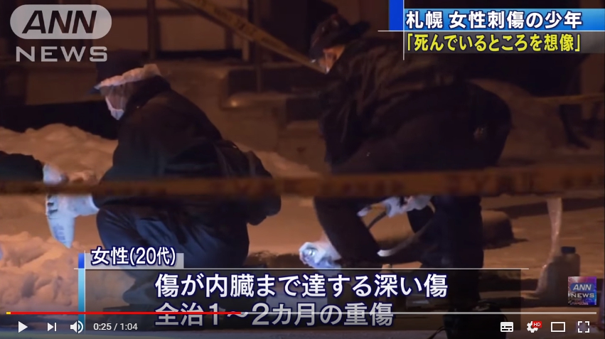 據了解,凶嫌和受害者並不認識,這算是一場隨機殺人事件。警方查出,作案的凶刀是男學生一個多月前偷來的。雖然男學生將女子砍成重傷,但因日本未成年人法律,未滿14歲的嫌犯不會被追究刑事責任,目前警方已將其轉移至札幌兒童輔導所,未來將交由兒童輔導所所長決定是否將犯事者轉交家庭裁判所。