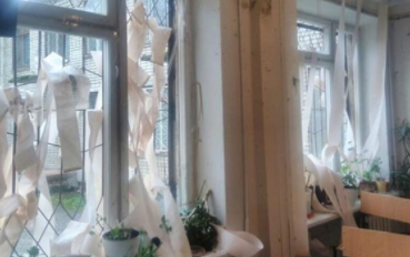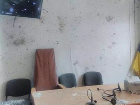照片中清晰可見,白色的牆壁沾滿灰燼,桌上的麥克風被震得東倒西歪,而牆上的電視與窗戶玻璃更是硬生被震碎,窗簾也被炸成條狀,地上仍留有死傷者的斑斑血跡,殘骸四散各處,可見當時的爆炸瞬間威力有多強大。