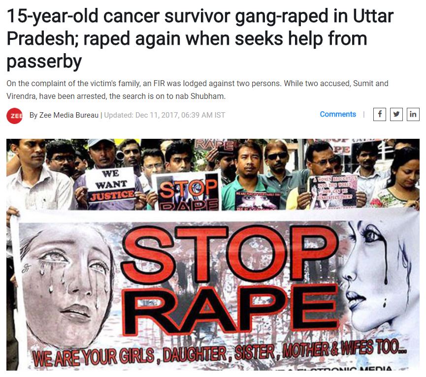 少女一度被性侵到昏迷,醒來之後立刻前往主要道路,試圖向路人求助,當時一名45歲的維蘭德拉(Virendra Yadav)見狀,便告訴少女「會開車帶妳到安全地方」,少女原本以為真的得救了,沒想到卻又被載至偏遠處,再次遭到性侵得逞,並且丟包路邊。