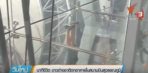 有些極限運動玩家會挑戰高聳建築物或城市地標,讓人看得怵目驚心,近日就有名歐洲女子在泰國機場表演「徒手高空倒掛」的特技,最後體力不支直接從高空墜落,驚動機場的工作人員與保全。