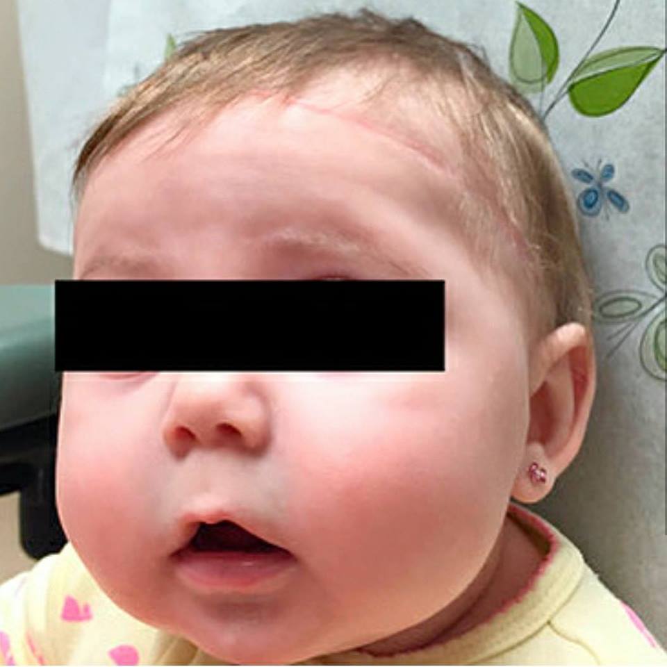 不過經過醫生處理、縫合之後,寶寶的傷口癒合良好,後續追蹤都沒有發現感染跡象,臉部神經也沒有受損,且術後6個月後疤痕的復原狀況也良好,已經漸漸地消失在寶寶的頭上。