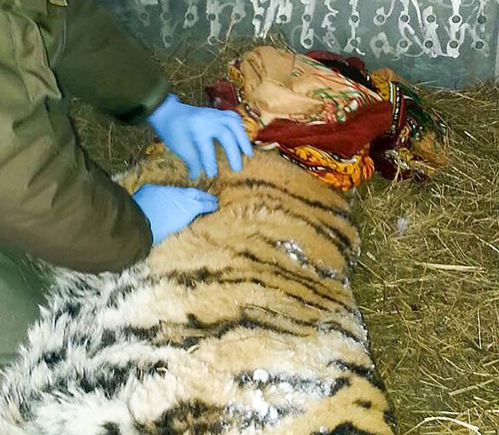 醫療人員抵達艾迪耶夫家中後,替老虎進行檢查,發現是一隻10歲、瀕臨絕種的西伯利亞母老虎,醫療人員打開老虎口腔後,發現上排牙齒都已經