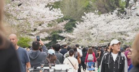 女子為拍美照爬樹櫻花樹突連根折斷倒下