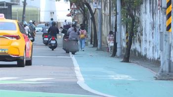獨家/直擊!機車騎上綠漆人行道不顧行人超危險