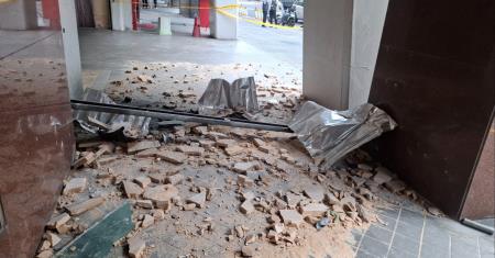 崩落警到場拉封鎖線。位在台北市中正區的,財團法人原住民族語言研究發展基金會,今天下午牆壁磚塊崩落,警方緊急到場拉起封鎖線,並且管制,幸好沒有人受傷。警方表示,13時10分左右獲報,羅斯福路1段63號「原住民族語言研究發展基金會」發生磚塊崩落,員警到場回報,建築物外牆磁磚確實有剝落情形,造成遮雨棚毀損,並已在現場劃設警戒線。12樓住戶傅小姐說,前兩天嘉義地震就傳出巨響,今天午間又發生更大一聲,才知道是外牆剝落,但相關單位在地震發生之後,都沒有做處理。俯瞰視角發現,剝落的長度大約3公尺左右。。......