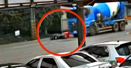 撞擊瞬間曝光!外送員自摔倒地水泥車煞輾斃