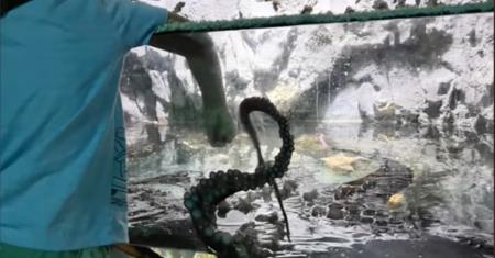 son has visited the same octopus every week for 3 years. She always loved him until today, when she tried to pull him into the tank. It took 3 aquarium employees to get her off. Was it affection? Recognition? Or something more dangerous? We thought it was......