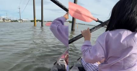 影/宜蘭伯朗大道變航道災民「划船買早餐」
